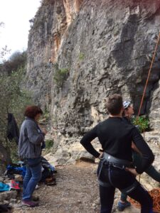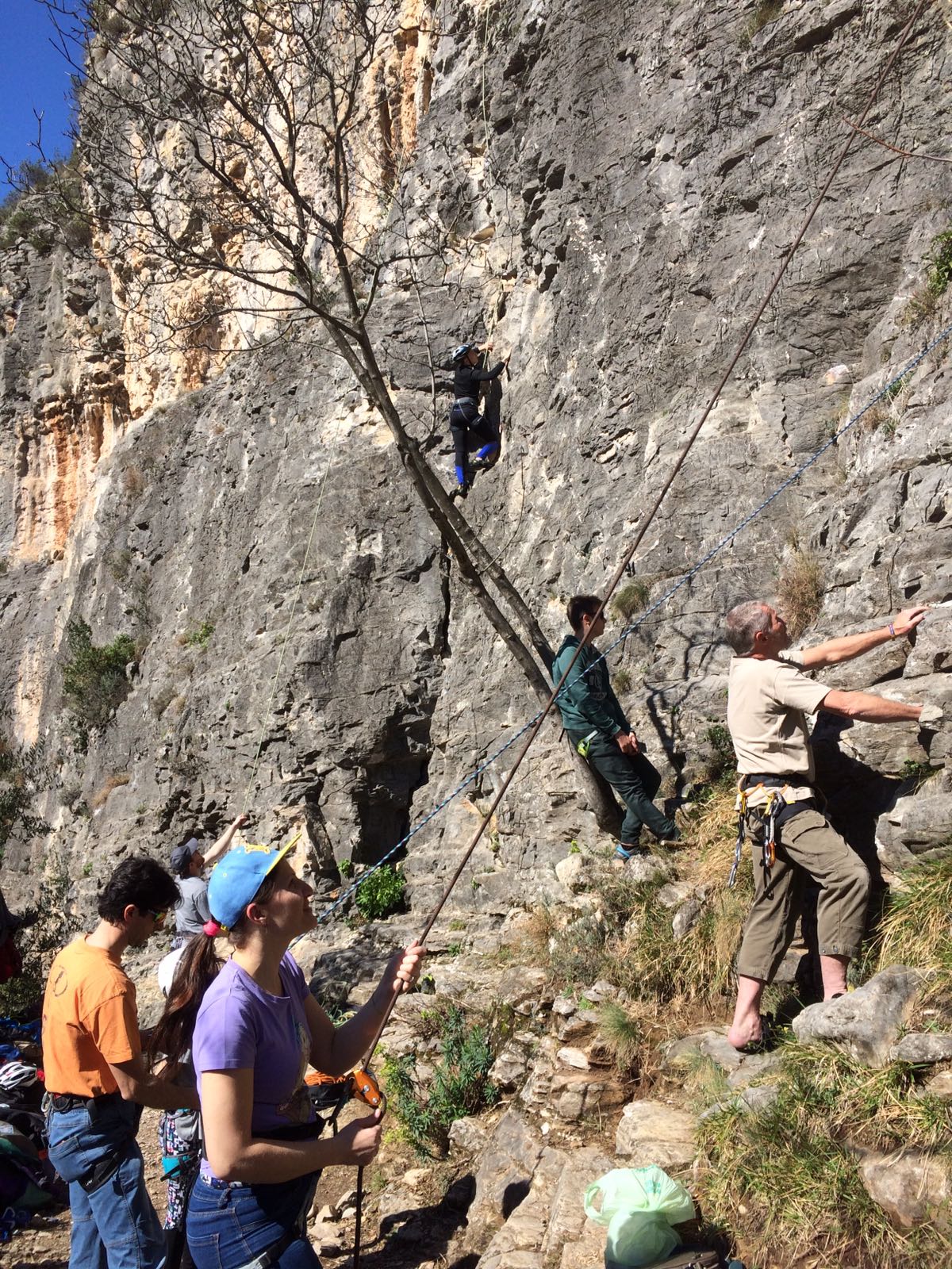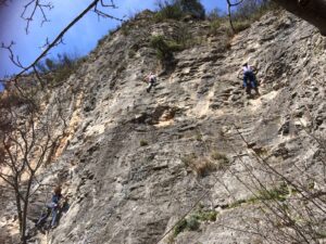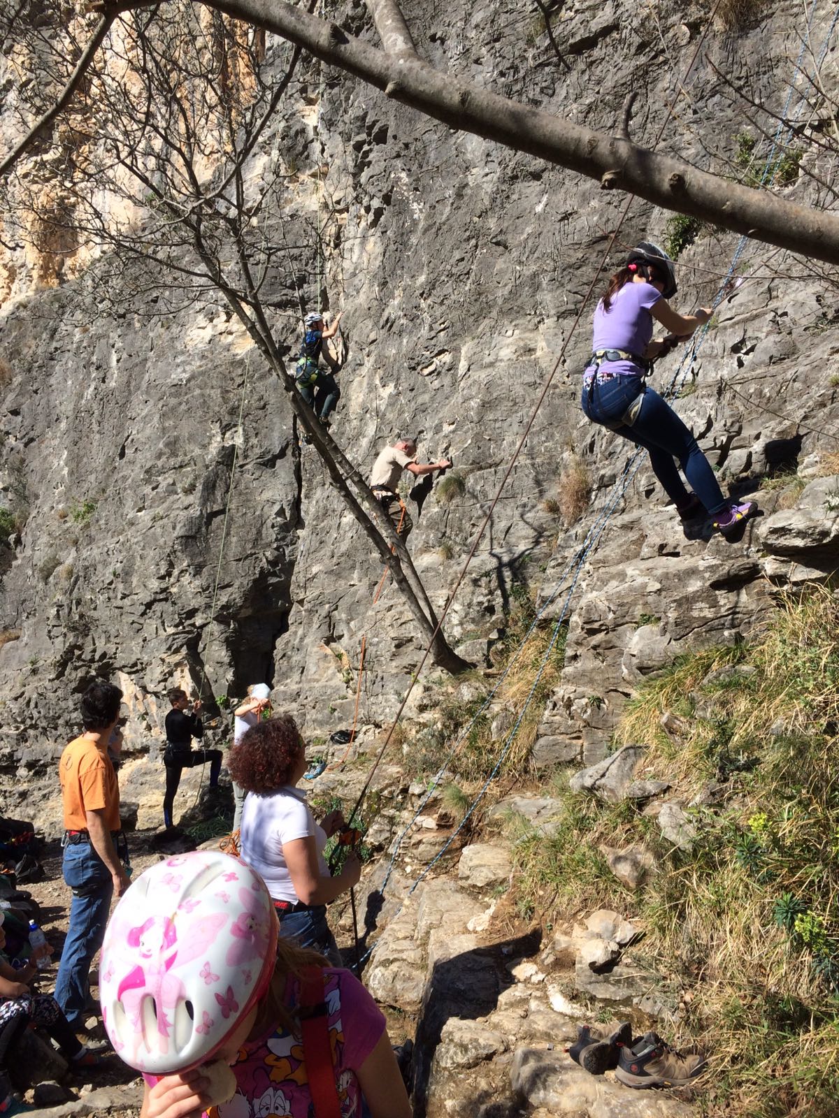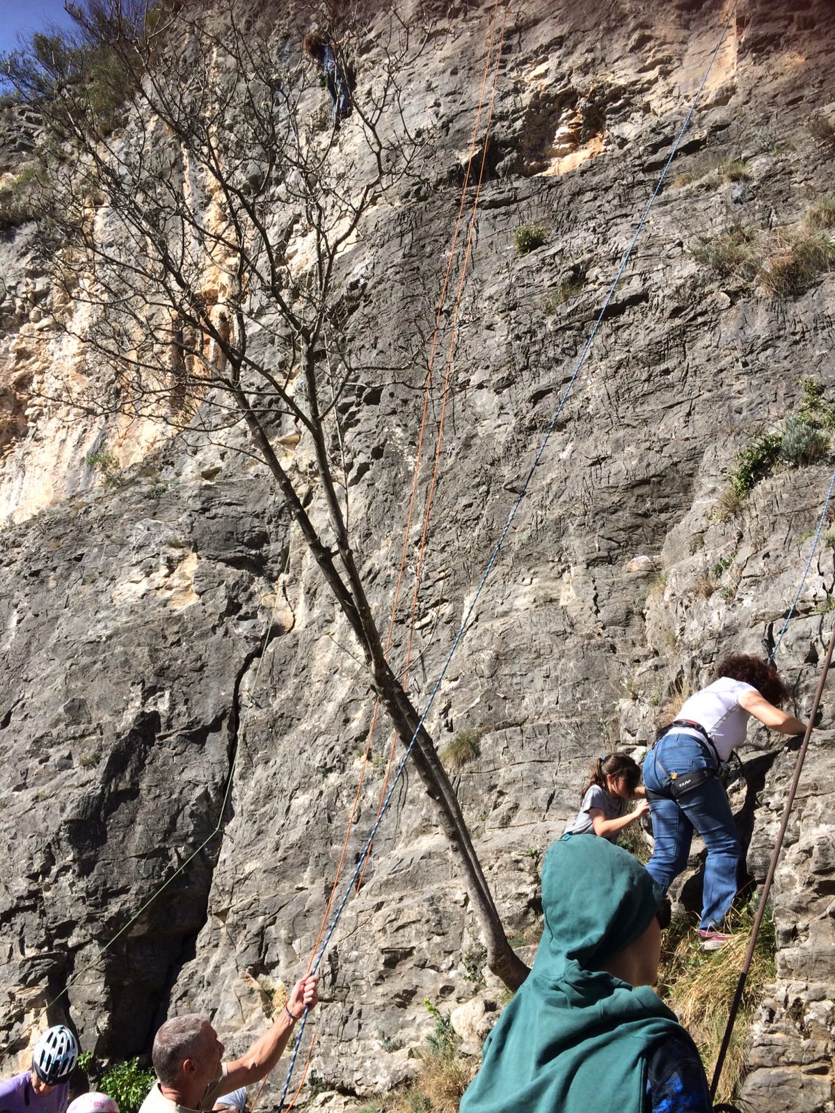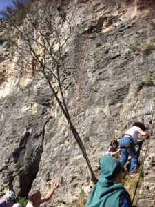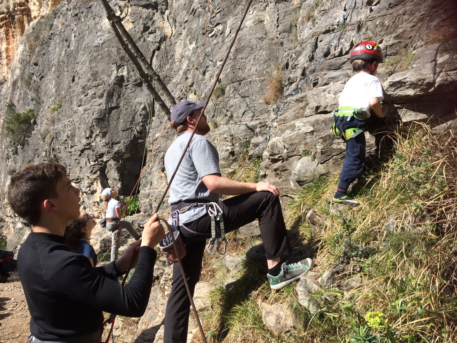 Giornata per grandi e piccini a tastare le prese della falesia Telematica in Val Pennavaire.