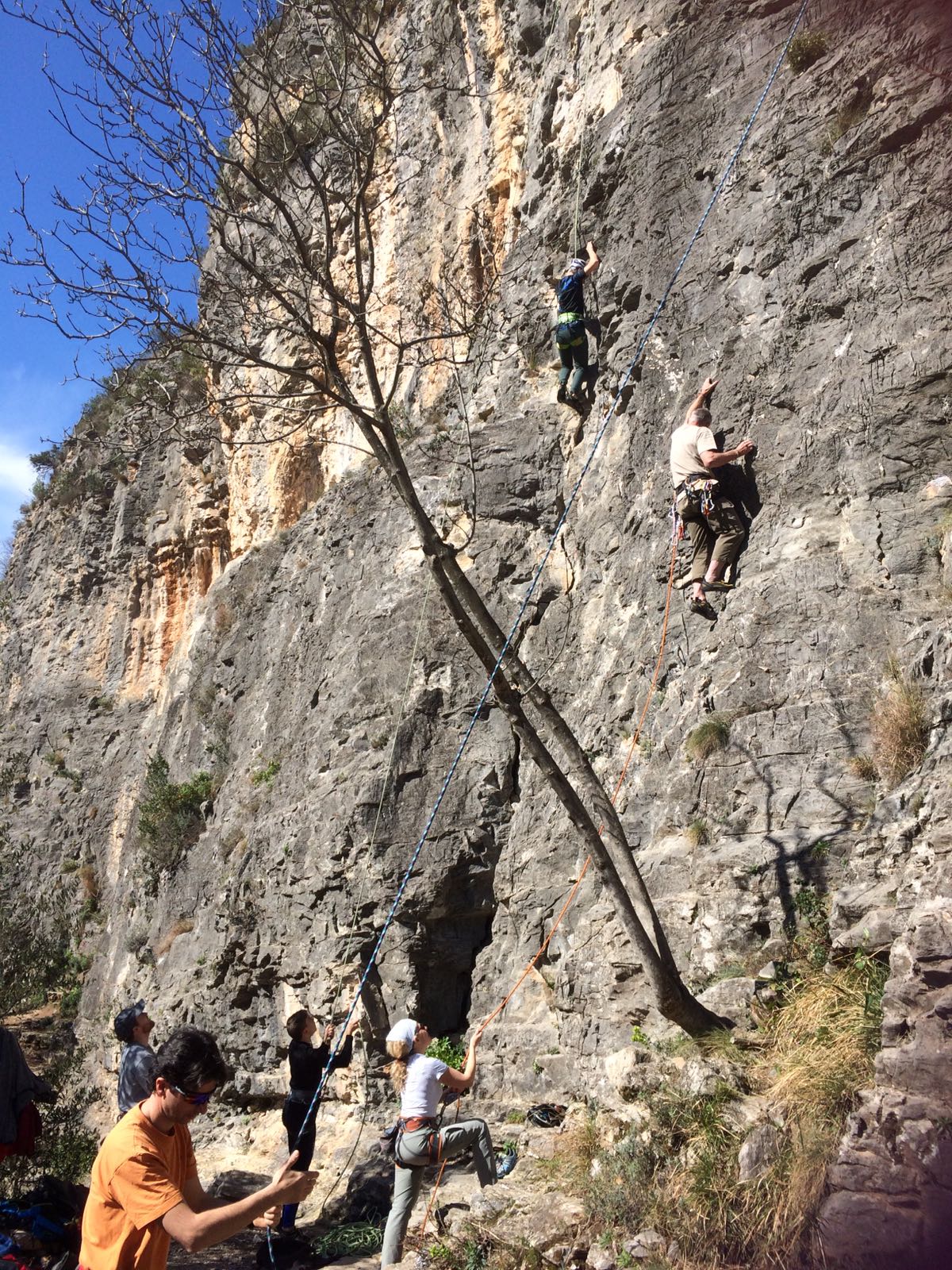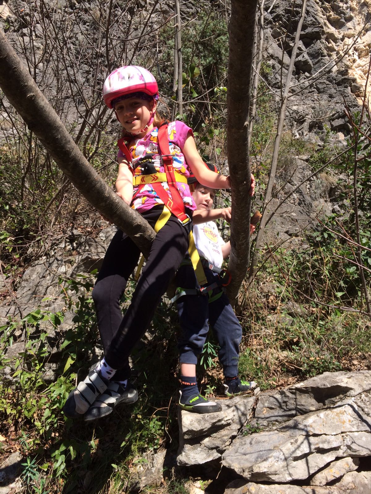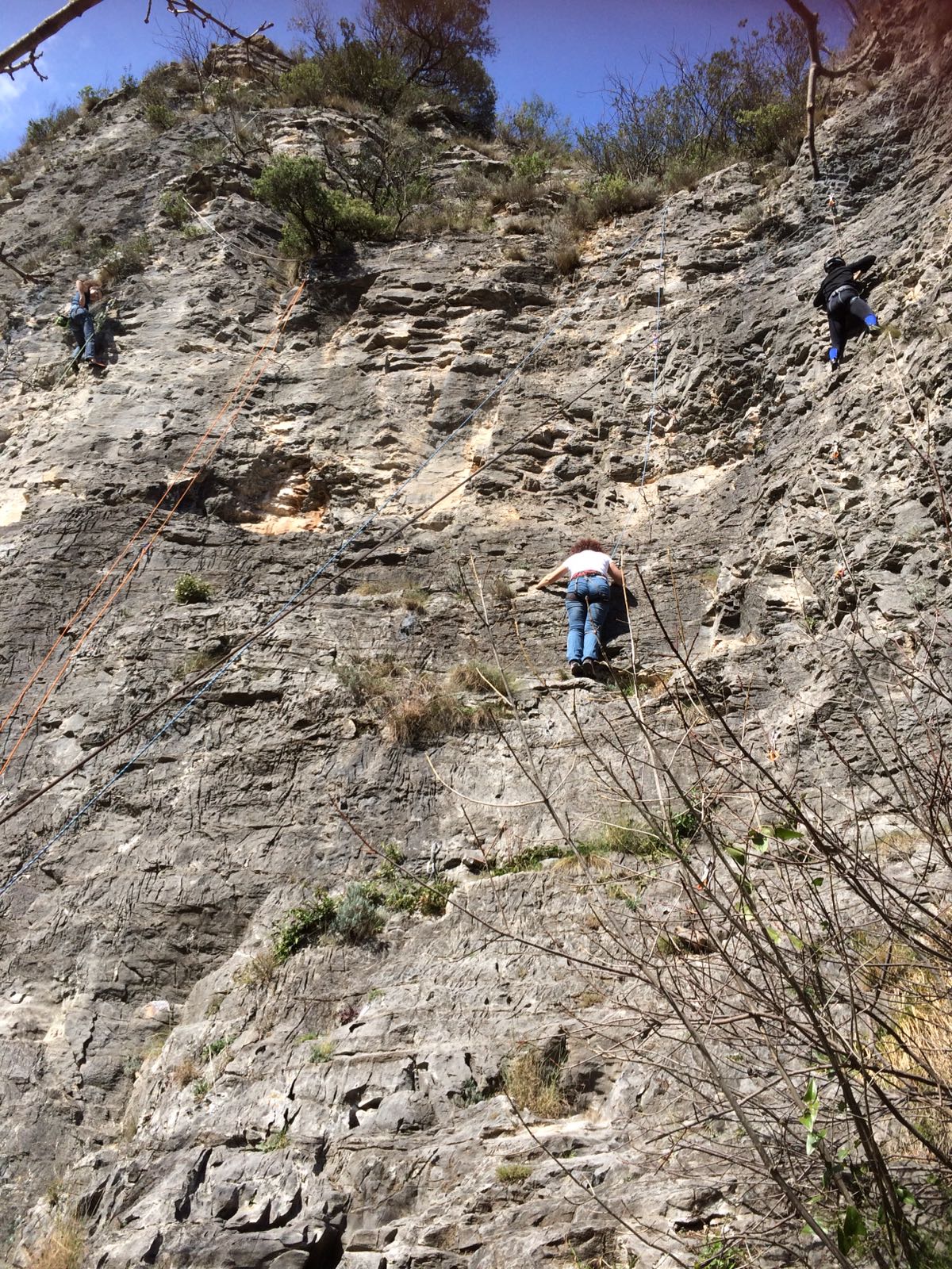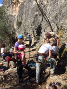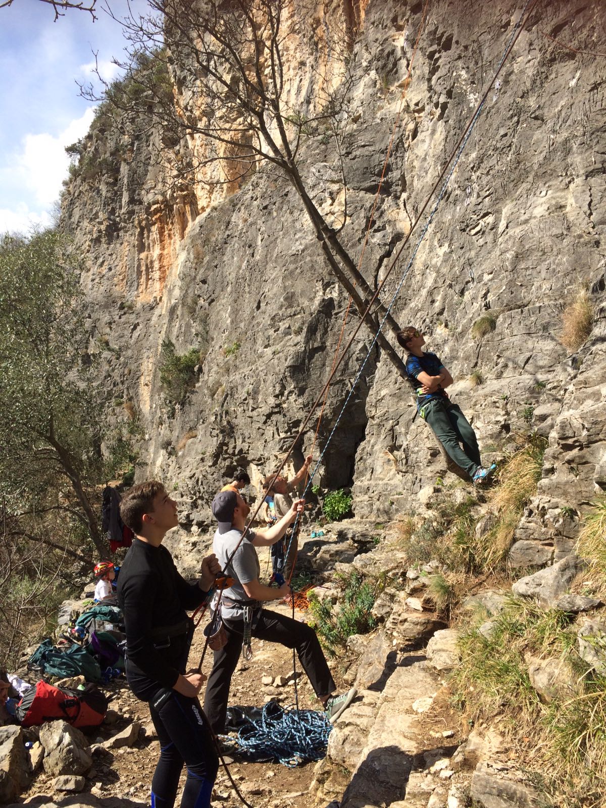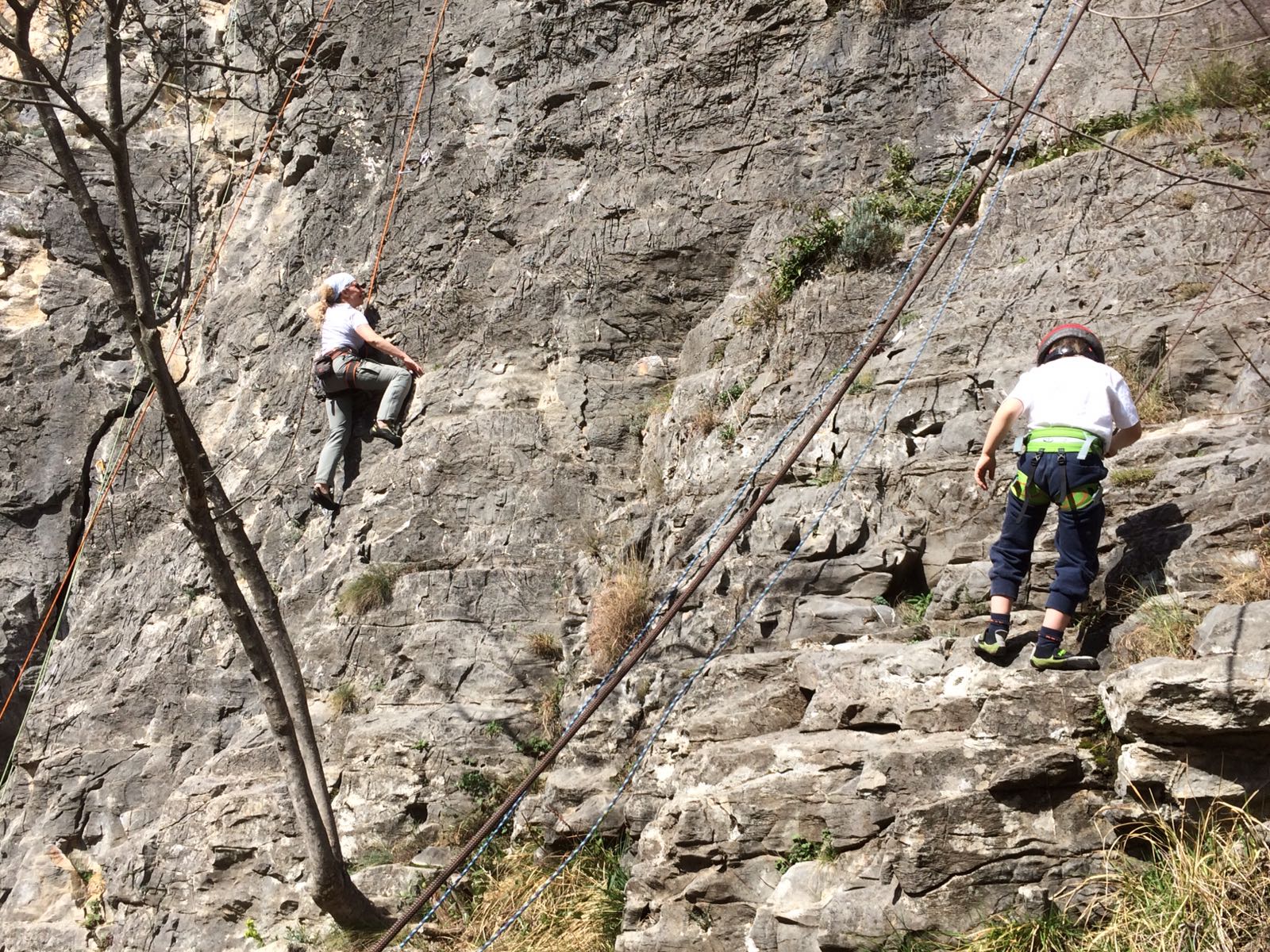 Giornata per grandi e piccini a tastare le prese della falesia Telematica in Val Pennavaire.